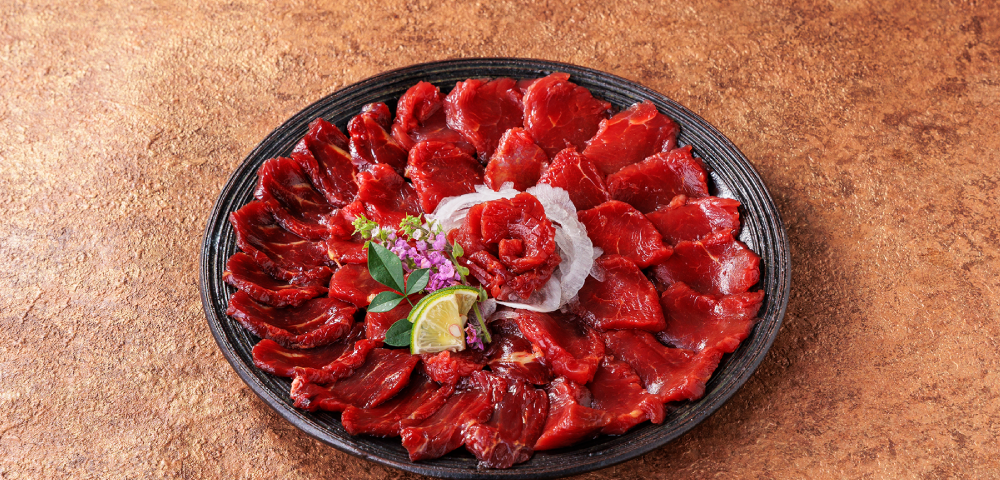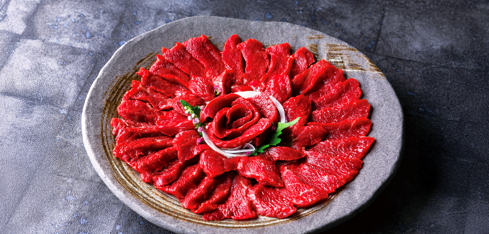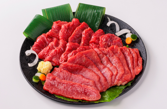 「軽種馬」からとれる「国産赤身」馬刺しは、あっさりとした味わいの中に甘みを感じられる部位です。国産にこだわりたい!というご飲食店様におすすめです。