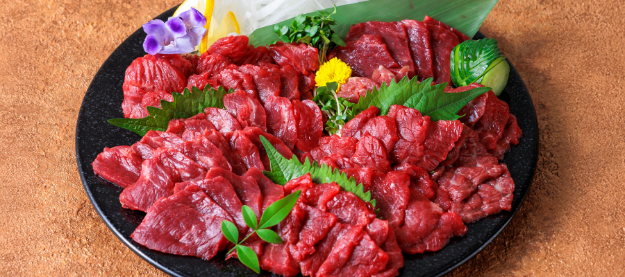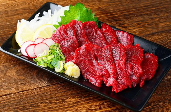 日本で流通している馬刺しの7割が、実は海外で加工され輸入した「海外産」です。国産の馬刺しは3割と希少性もあり、人気。「軽種馬」からとれる引き締まった赤身です。